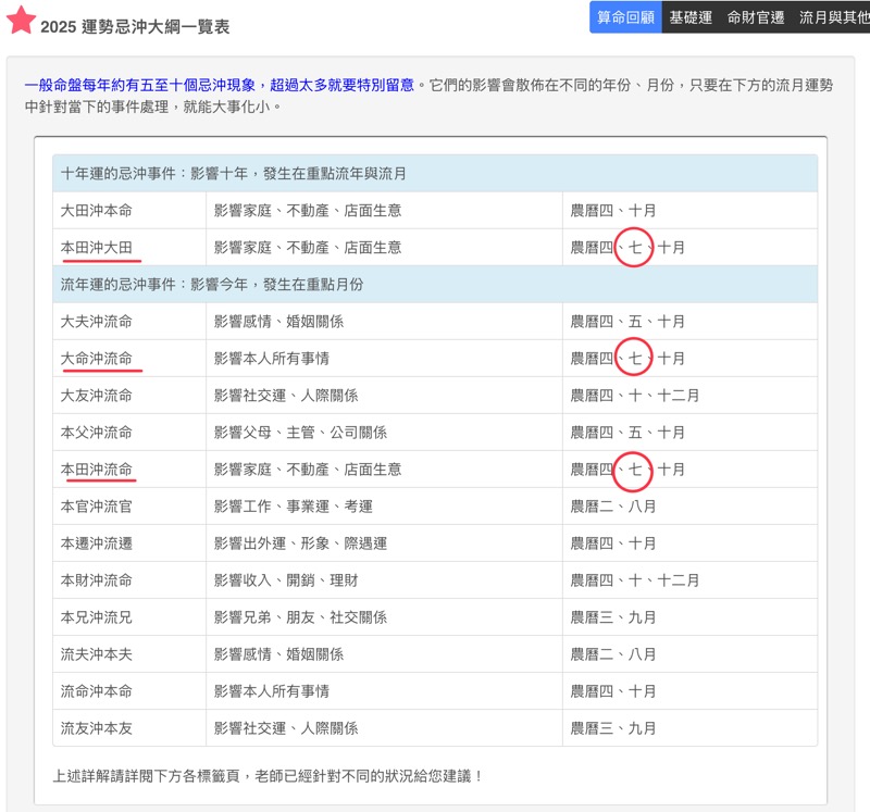 其原因,是今年有太多的沖都跟命財官遷有關,同時出事的日期在農曆七月,也是命宮沖與田宅沖。命宮沖影響運勢主體,會加強其他沖的負面效應,而他的田宅沖剛好是大限與本、流年的「命遷子田」宮,在飛星來說屬於「意外」象。