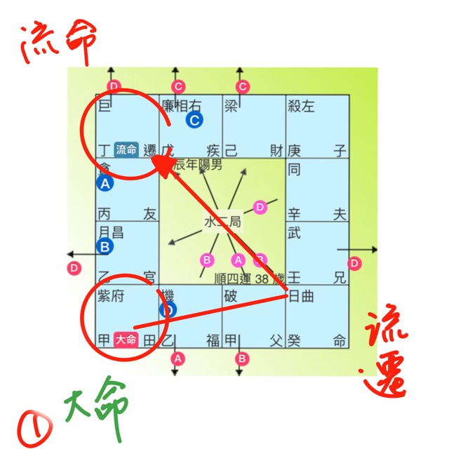 註:一定有人會問,流日為什麼是在那個位置,往後了一格?因為我們欽天門的推算規則是流月後一日起初一,這樣算流日才會正確。如果你一直算不準流日,可以試試看。懂的都懂。